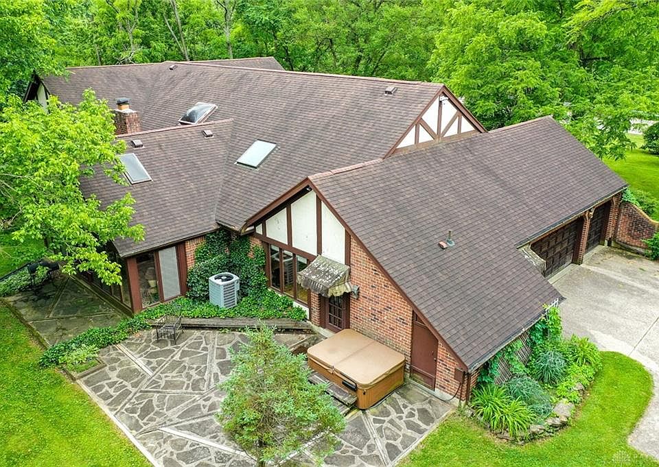 Massive Tri-level with Tudor architecture, stunning style and not your ordinary property, situated on a very private and quiet .9 Acre wooded lot in Washington Twp with very upscale homes surrounding it. Features: Unique floor plan with cathedral ceilings with exposed wood beams, lots of windows and sky lights for natural lighting, special loft area 24 x 16 with it's own spiral staircase, beautiful 24 x 16 florida room over looking the rear yard and steps out to a 500 sqft patio, 2 furnaces-2008, 2 ton and 3 ton A/C units-2010, Roof-2011, hot tub 2017, 3 car garage that is 682 sqft, Lower level features wet bar, rec room and 2 additional rooms with a half bath, large driveway with plenty of extra spots for parking, separate greenhouse/Woodworking building with electric, storage shed. This home is dated and will need work, but could be turned into something amazing. If financing, property will need flood insurance (zone AE). Selling "as is" to settle estate.