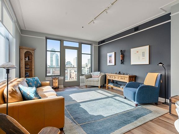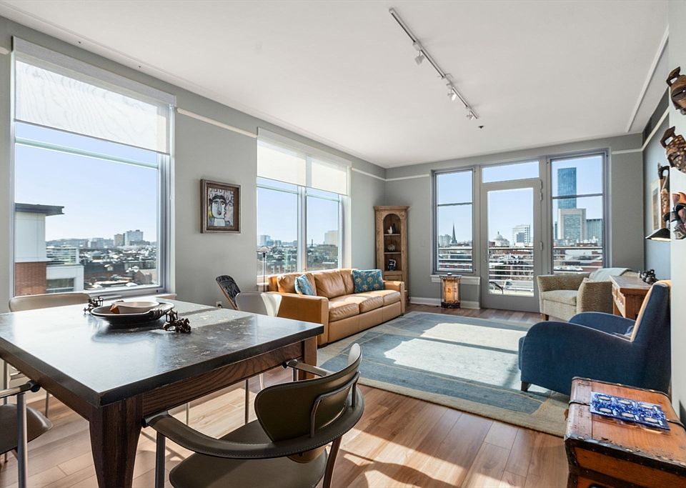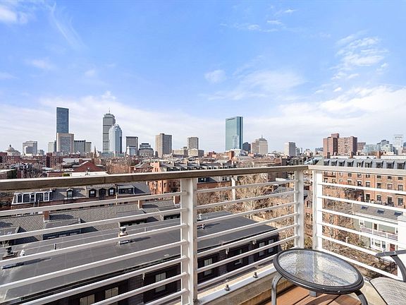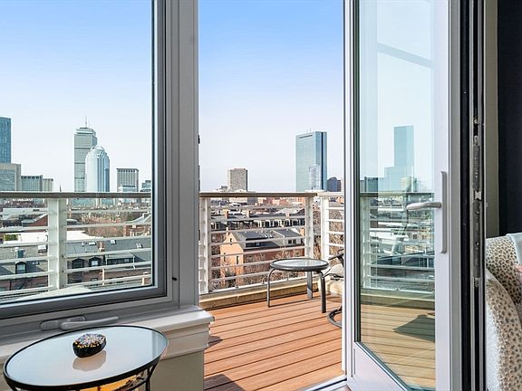 Sensational 2 Bedroom, 2 Bath condo featuring 2 decks w/ sweeping Back Bay to Downtown views & 1 garage parking space. Upon entry there is a utility room with stackable washer dryer & a full bathroom w/ walk in shower. The en suite primary bedroom is on the right & currently used as an office/den. The views from the primary bedroom deck continue from the 2nd bedroom. Turn the corner into the corner living room for more views and another deck. You will be guaranteed tremendous sunlight from the two exposures of the living and dining room. There's a large pantry before the galley kitchen. The kitchen has a granite counter, white appliances and cabinets. There are new engineered hardwood floors throughout this home except for the tasteful carpet in the bedrooms. Extra storage is located on the same floor. Pet friendly and professional management. Enjoy the best of the South End with the original Flour Bakery downstairs, community gardens then Blackstone and Franklin Squares 1 block away.