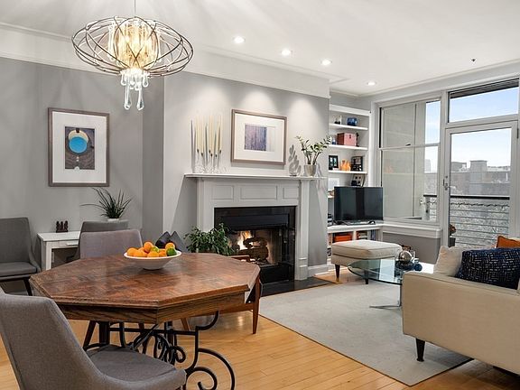 THE RESIDENCES OF 1597 WASHINGTON STREET - Newly constructed landmark building. Exquisite Private Elevator Bank and Lobby for the upper floors. This penthouse residence occupies the center of the top floor -- ALL facing south with beautiful views of the parks - splashed in sunshine. Double elevator bank from private garage to the Penthouse, walk-out front terrace, fireplace, Central A/C, Master suite with gallery dressing corridor and ensuite bathroom. Hardwood floors throughout, architecturally designed walls of south-facing windows line the entire south facing borders of the front of the property. Stunning layout for the utmost privacy in the master quarters. Ultra-modern lobby featuring amazing artwork, separate package/mail area, separate building/unit storage, bike storage, and a full garage space. With Flour Bakery on level-one this is truly an exciting property.