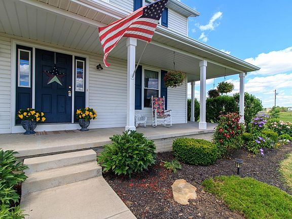Enjoy this 2 Story Home situated on over 6 acres including a 1/3 acre pond that is "swim ready"! The pond has an aerator/13FT deep/fish & lined. Home has been converted to Natural Gas/Newer 50 GAL Hot Water Tank/Invisible Fence/New Roof & Windows 2012/Deck re-stained 2015/Concrete DW sealed 2015 & Gravel Partial DW. Outdoor Speakers/Apple Trees/Garden/Pole Barn w/4" concrete floor/electric & plumbed for water. Formal Living/Dining & Family Room. Kitchen is spacious with center island/new dishwasher/sink & ceramic back-spalsh. Laminate wood flooring in Foyer/Extended Foyer/Kitchen & Mud Room Area. 1/2 Bath updated with Ceramic Tile Floors & Designer fixtures. Basement has a bar with lighting/cabinets w/lazy suz! Extra Storage in basement and Rec Room. Master suite has 2 Walk-In Closets/Private Master Bath with Vanity & Soaking Tub. The attached garage is dry-walled/rock solid floor. Full front porch that wraps around/mature trees & landscaping!