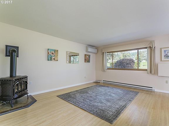 On the golf course with sweeping view of 2nd fairway, nicely updated King City home in Excellent condition. Featuring Honey Maple kitchen cabinets, Hardwood Bamboo floors, Newer roof,ext paint, windows. Beautiful garden & patio. Recent updates include Ductless heating & Cooling, Decorative Gas Stove, Rmdl Bath, Landscaping & flagstone patio. 14X12 Finished bonus / LNDR rm ?office, craft room or hobby/Storage. All appliances included