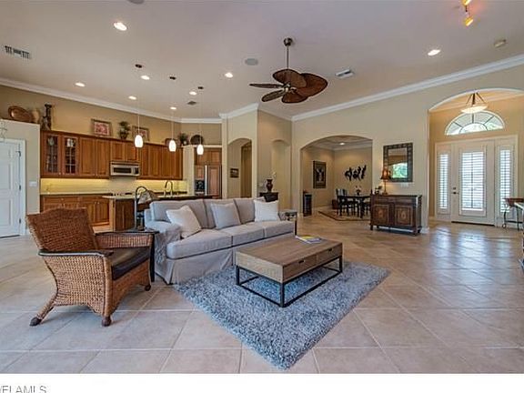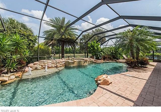 H.9337 Rare opportunity to own this highly upgraded, most popular VERANO plan w/3 bedrms plus den/office, 3 full baths, 3 CAR garage. One of a kind custom 30 ft. center deep salt water pool w/oversized spa, sun shelf, rock water features, self cleaning, extended screened lanai & brick pavers, must see to believe! Top premium cul de sac, lake lot. Magnificent custom landscaping. Newly renovated exotic granite kitchen w/counter height island, glass tile backsplash, 42 in. cherry cabinets w/pull outs, stainless appliances, led lighting. Granite bathrooms & laundry, electric hurricane shutters, plantation shutters, porcelain tile on diagonal throughout living areas, wood den floors. Custom built in entertainment center, mosaic tile niches, crown molding & recessed lighting throughout, expansive volume ceilings. Delasol is a low density private gated community w/only 286 single family homes, on 147 acres, 62 of which are set aside for preserves, lakes & green spaces. Enjoy the clubhouse, pool, spa, lighted tennis courts, fitness ctr, basketball & play areas. Desirable N. Naples location, situated off the Livingston corridor, minutes to Naples beaches, shops & restaurants. Low fees!