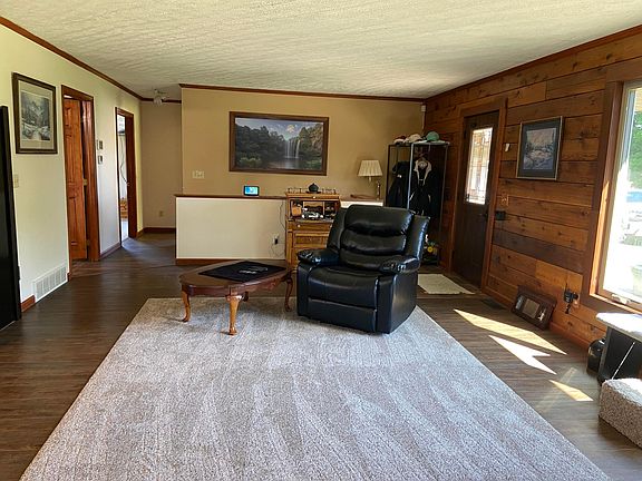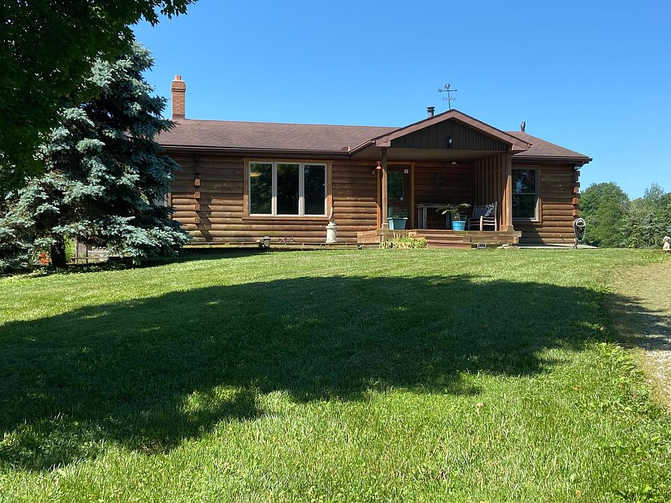 Stunning log home on over 5 acres. Three bedroom, two bath home. Walkout lower level allows you enjoy the country views. Perfect entertaining space in the basement. This is a must see! Easy access to 71.