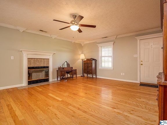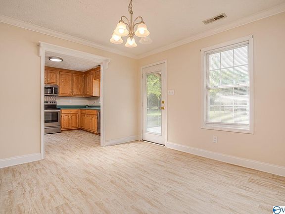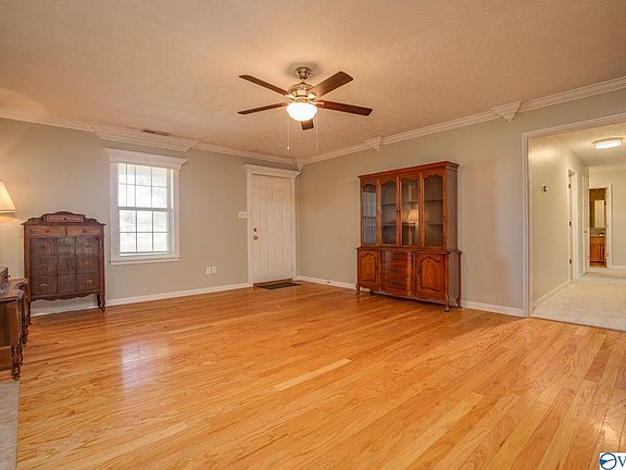 Freshly updated Full Brick Ranch Home on a Huge Corner Lot, Side Entry 2 Car Garage, with Insulated Doors + Detached Workshop with Covered Patio. 3 Bedrooms + Isolated Study, New SS Appliances, Oak Cabinets, Real Wood Flooring in the Living Room with extensive Crown Molding, Plus New Carpet & Vinyl Throughout. Master Suite has Jetted Tub, Separate Shower & 2 closets. 42" wide Hall, fireplace surround ready for your gas log insert. Conveniently located between Huntsville & Athens, only ~15 minutes to new Mazda Toyota Plant, ~20 minutes to Research Park.