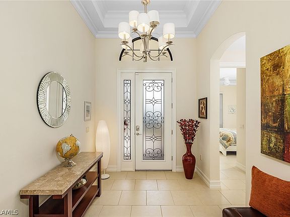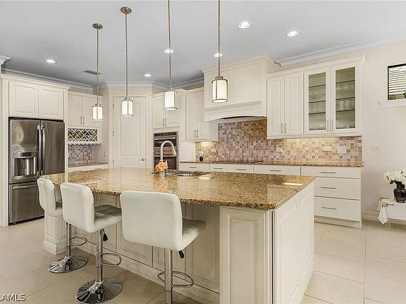THIS is the one! Spectacular home in the gated community of Savona Bay, with an assigned dock and direct water access, this property will impress! Being offered turnkey the home is move in ready. Great room concept. Gourmet kitchen with walk-in pantry. Substantial island with breakfast bar and adjacent dining area. Large living room with pocketing sliders opening onto the fully screened oversize lanai. Outdoor kitchen, heated pool and spa, pool bath, panoramic clear view screen overlooking a small lake with a water feature fountain. Master suite and mini master suite plus additional guest room and guest bathroom. Den or home office with double doors. Large laundry room with extra storage and 3-car garage. Designer finishes, neutral colors and décor, volume ceilings, crown molding through-out, granite counters, stainless steel appliances, tile flooring. Short walk to the assigned dock with water and electricity available. Lifts are permitted. Savona Bay is located just a short distance off of Summerlin Road and near the Sanibel causeway affording ease of access to shopping, restaurants, health care, entertainment and beaches. Paradise found!!!