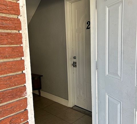 Recently upgraded 2nd floor, 2 bedroom 1 bath condo. Quiet and private apartment inside of 4 unit building. The building has two entrances, one in the front and one in the rear, both accessed through a digital keypad. The apartment's main door is inside the building away from the elements. The apartment is spacious and has tile floors throughout, central air conditioning with heater, and a stove and refrigerator. One off street parking space available. Security cameras throughout the outside of the building.