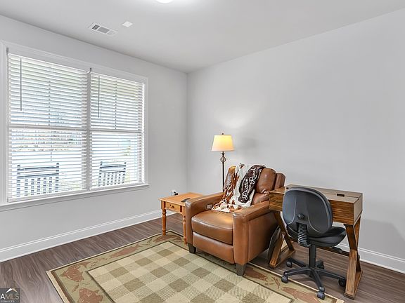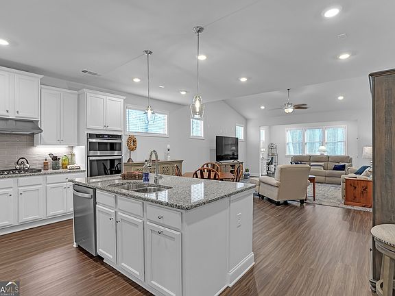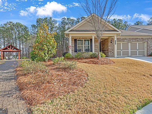 Built in 2020 and better than new, this beautifully maintained single level home is located in a prime setting within a sought-after Active Adult Community--just steps from the community fire pit and mailboxes. Designed with comfort and convenience in mind, the open-concept floor plan offers two bedroom and two full baths. The bonus room/office could be third bedroom but no closet. The spacious primary suite features a stepless entry to an oversized, tiled walk-in shower, providing ease of access and peace of mind. Additional highlights include a double vanity and a generous walk-in closet. The chef's kitchen is appointed with granite countertops, center island, white cabinetry, a classic subway tile backsplash, and stainless steel appliances, seamlessly flowing into the family room. The family room boasts a vaulted ceiling and open sightlines to both the kitchen and sunroom, creating a bright and inviting living space. Situated on a level, landscaped cul-de-sac lot, the home backs to a private space, offering exceptional privacy. The sunroom opens to a double -wide covered patio--an ideal spot to enjoy nature and watch the deer. Conveniently located a short distance from the Mall of Georgia, residents enjoy easy access to premier shopping, dining and entertainment. This home offers low-maintenance living in an exceptional location. Call for appointment today!