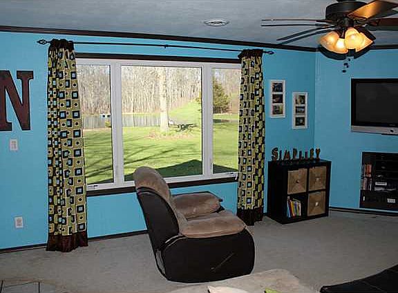 Nestled down a winding drive through lots of trees is this great home that is situated on over 5 acres, have a beautiful pond and a detached outbuilding. Recent roof and exterior siding along with new interior doors, paint, light fixtures, windows and more. Full basement that has lots of possibilities, large master suite on the main floor, and recently added wood burning stove in the garage.