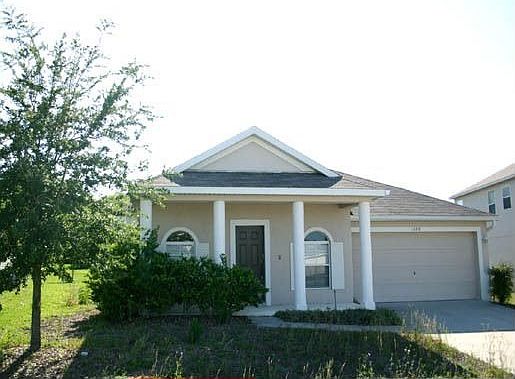 Bank owned! Stylish home in lush and rolling Country Club Community with challenging and beautiful 27 hold Joe Lee designed Golf Course. Island Kitchen with rich wood cabinetry, gorgeous 8' Corian Breakfast Bar & countertops with integrated Kitchen Sink. Designer tile, upgraded Frieze carpeting and 2"blinds throughout. Master Bath has cultured marble countertops with dual sinks, garden tub and glass enclosed shower. Spacious office with French Doors could provide a 4th bedroom or flex space with nearby access to Powder Room with Pedestal Sink. Lanai is accessed from Family Room by sliding glass doors and covered front porch entryway has attractive columns. Like new condition! Neighborhood Description Lush and beautiful Country Club community with community pool and 27 hole golf course.