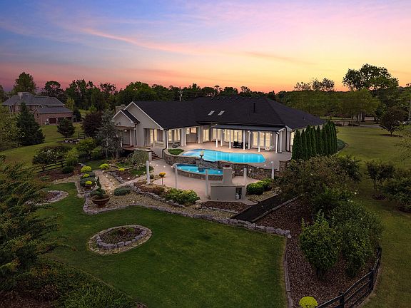 Experience luxury living in this 4,785 sq ft exquisitely remodeled countryside estate on 3.2 acres, featuring an infinity pool, outdoor oasis, and exceptional garage space, including a 3-car attached garage and a 2-car detached garage with an underground storm shelter. This executive home offers 4 bedrooms and 4.5 baths and opens to a grand foyer showcasing soaring ceilings, marble flooring, elegant wall niches, and expansive windows framing views of the outdoor retreat. An office and formal dining room flank the entry, and the open-concept layout allows for seamless everyday living and effortless entertaining. The oversized primary suite is conveniently located on the main level, offering privacy and serene views of the outdoor living space, while an additional upstairs suite provides an ideal setup for a teenager, guest, or in-law quarters. Step outside to your resort-style haven with covered porches, an infinity pool, an outdoor fireplace, lush flower gardens, and a built-in grilling area perfect for gatherings. Situated on peaceful acreage with no HOA, this property offers both privacy and freedom. With a new roof and numerous high-end upgrades throughout, this home is truly move-in ready. Conveniently located minutes from I-40, I-840, and BNA, this estate delivers the perfect blend of luxury, comfort, and accessibility.