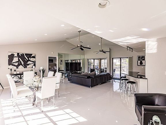 Construction near complete (Jan 2023) on 3 car garage. Stunning 3818 sq/ft single story contemporary home. Spectacular long water view home features 6 bedrooms, 5 baths, 3 great rooms, 2 laundry rooms, pool with spa jets, gym room w/ sauna and a 5 car garage! One of a kind luxury single home has an incredible floor plan that achieves a “3 family living” with privacy, if desired, having 2 independent in-law apts! Ideal home for a large family, older parents or children, guests or additional family. Both in-law apartments may be used completely separately having independent entrances, a/c, food prep area, appliances, and family room. The 3 car garage and 2 guest park spots add even more convenience. The home utilizes gorgeous high end finishes throughout. Featuring 50 feet of glass overlooking the water, beautiful large porcelain rectified tile, over 90 feet of granite and quartz counter tops, stainless appliances, solar heated pool w/Spa jets, dock, lift, long water views, make this unique home a rare find. Excellent documented rental history! Home provides owner with ultimate flexibility. Possible seller financing to buyer. Seller is a licensed Fl realtor so please respond only if you have qualified buyer.