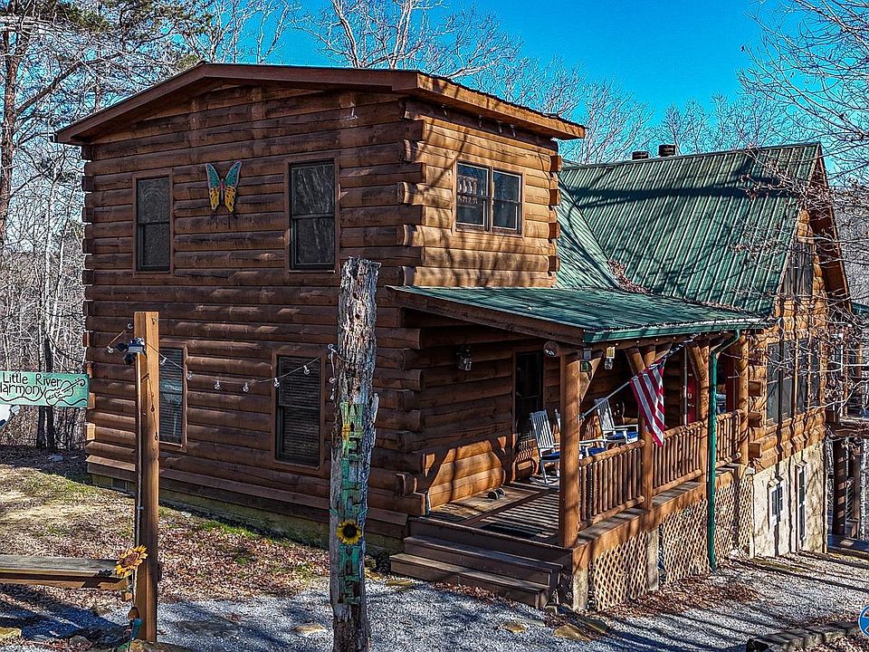 Lovely 4 bed ,4.5 bath log home on middle fork Litle River, Mentone, Al. Over 350' on Little River, completely furnished & equipped for rental, sleeps 20, rental info avail on request, heart pine wood floors, walls and ceiling, 21' cathedral ceiling in great room, 1st floor-open concept, rock fireplace gas logs, dining area, completely outfitted kitchen w all appliances, 21' screened porch overlooking river with large wood burning fireplace leading to well manicured path to river. 2nd floor- 2 bed, 1.5 bath, hardwood throughout, all hand made wooden beds, ind size washer/dryer, bonus room w trundle bed. Lower level-sleeps 6, washer/dryer, kitchen,full bath. Ext stained 2022, Direct TV.
