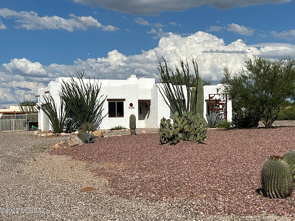 Welcome home to beautiful Diamond Bell Ranch! Enjoy life to the fullest! This 3BR 2BA open concept home with a custom Arizona room. Only a short drive from Tucson & you have the 360 degree views of all the mountains. Night star gazing, breathtaking sunsets behind the world renowned Kitt Peak Observatory on the Baboquivari Mtn! The backyard boasts mature producing grape vines, beautiful roses and fully fenced for your fur babies Enjoy horseback riding, hiking, walking, running or ATV riding on the endless trails just minutes away! has been freshly painted on the inside and has a welcoming feeling throughout! Roof has been re-coated new kitchen countertops and so much more! Owner pride at its best in this beautiful home! Must see to appreciate! SELLING AS IS.