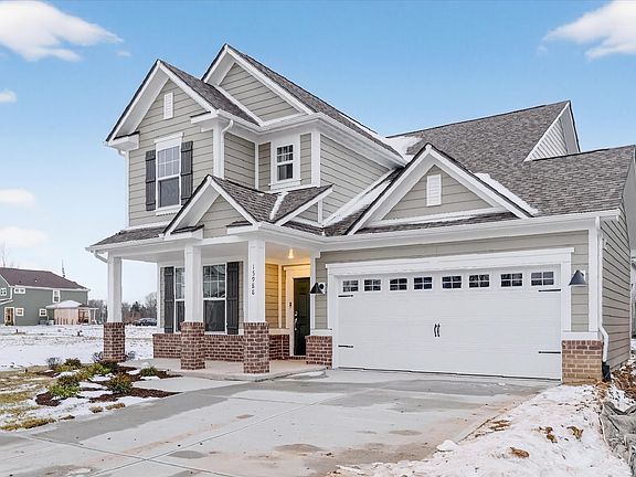 This brand new Cytheanne Woods home offers more than 2000 square feet with an inviting open-concept design. The main level includes a spacious dining area and a modern kitchen with a large island, stainless steel appliances, quartz countertops, and a generous pantry, along with a dedicated main-floor office ideal for remote work. Upstairs, the primary suite features a double vanity, large shower, and walk-in closet, while a flexible loft and upstairs laundry add everyday convenience. A covered patio extends your living space outdoors, and the 2-car attached garage offers great storage. Set in a new Fishers community close to award-winning HSE Schools, Hamilton Town Center, and easy interstate access, this location blends comfort with convenience. A new Meijer will be opening nearby, and every home includes a water softener and washer/dryer.