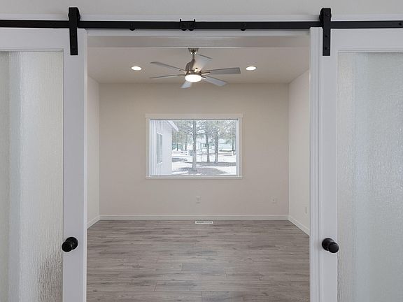 Fencing on one sideWalk-in closetOffice with double-barn doorsPrimary suiteSoaking tubOpen floor planLaminate plank flooring