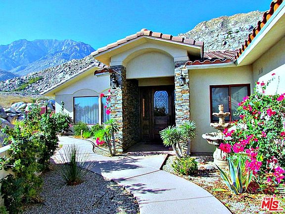Beautiful Mediterranean home in the private community of Snow Creek Village, w/ 3 bed, 2.5 baths, 2035 SqFt, walled and gated for privacy. Amazing panoramic views of Mt. San Jacinto, surrounded by some of the best hiking trails in the country. The Pacific Crest Trail runs through Snow Creek. Limited to 39 homes the village exhibits a mix of different architectural styles, showing a bohemian eclectic influence.* The entire house has stained concrete floors, granite counter tops in the kitchen w/stainless appliances, the bathrooms have a combination of granite w/travertine, jetted tub in the master bath, 2 fireplaces, tall ceilings, 2 car garage, washer, dryer, professional landscape. * Tall sliding doors off the living room lead to the fantastic backyard, with a large covered patio, pebble tec pool, hot tub and built in fire pit w/ a magnificent view of Mt. San Jacinto.(North face) * Nature lovers, hikers, artists, writers this is for you. Only 10 minutes to Downtown Palm Springs.