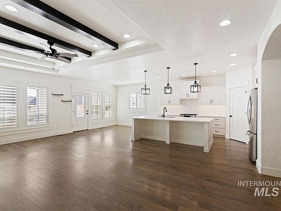 Low Maintenance Yard and Lots of room for your toys! This beautiful single level home features an open floor plan with split bedrooms. Cozy up by the brick gas fireplace in the over-sized great room with beamed ceiling, it opens up to the kitchen and dining room. Kitchen boasts quartz counters, soft close cabinets, and a gas range. The over-sized master suite offers a secondary retreat with recessed ceiling with lights, master bath has large soaker tub, tiled shower, walk in closet, direct access to the laundry room, and offers privacy with its split bedroom floor plan. The 3 car garage has epoxied floors and a 38 ft. RV bay to offer plenty of room for all of your toys. Covered patio, fully fenced and landscaped, and sub has fiber optic internet. Close to schools and easy freeway access