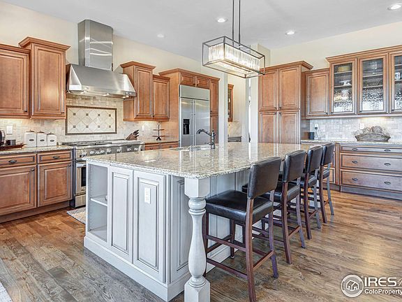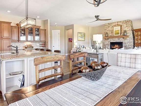 Nestled on a sprawling 1.07-acre lot in the esteemed Kenosha Estates Erie, Colorado, 1599 Carlson Av presents a stunning custom home offering unparalleled luxury & breathtaking mountain views. Spanning 4,481 square feet across three levels, this meticulously crafted residence boasts 4 bedrooms, 5 bathrooms, & a wealth of high-end amenities. As you approach the property, you'll greet the end-of-cul-de-sac, ensuring privacy & tranquility. The home's exterior exudes elegance, manicured landscaping, captivating mntn vistas provide a picturesque backdrop for outdoor living. Step inside, discover an inviting interior adorned w/ custom finishes & designer touches throughout. The luxurious kitchen, where gourmet cooking meets stylish entertaining. Featuring premium appliances, granite countertops, & ample cabinetry, this culinary haven is sure to impress even the most discerning chef. Retreat to the remodeled master suite, relaxation awaits. The spacious bedroom has stunning views & two sided fireplace. Open your french doors to take in the breathtaking views. The adjoining master bath showcases a lavish remodel, complete w/ a large walk-in closet, dual vanities, and a luxurious soaking tub and wine fridge. Entertainment abounds in the fully finished basement, which includes a custom bar, cozy movie room, pool table, & a guest suite, providing the perfect setting for gatherings w/ family & friends. Outside, the allure continues w/ a private outdoor patio area, ideal for alfresco dining & entertaining against the backdrop of Colorado's majestic mountains. The property backs to a trail, offering convenient access to outdoor recreation & scenic strolls. Additional highlights of this exceptional residence include a three-car garage, Custom Window Treatments, & meticulous attention to detail throughout. Experience the epitome of Colorado luxury living where every detail has been carefully curated to create a home that is as exquisite as it is inviting. All furniture for sale