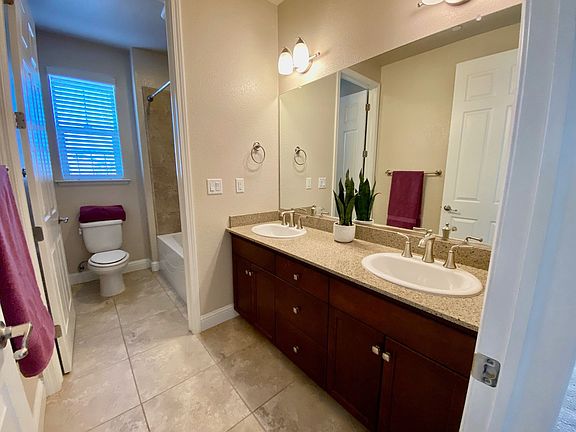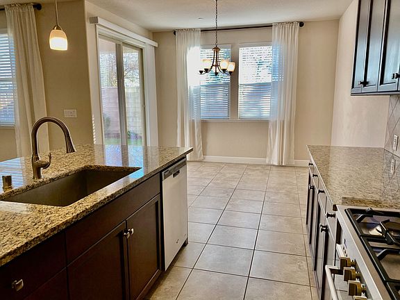 Move in ready 3 Bed / 2.5 bath. Home has spacious entry with open staircase. Tile downstairs. Carpet upstairs Living room has great windows for natural lighting. Kitchen is open to living room and dining room. Kitchen has center island with breakfast bar, pantry, gas stove, and built in microwave Upstairs has an open loft. Upstairs main bedroom has en suite, 2 separate sink vanities , shower & soaking tub. Two additional bedrooms upstairs. Upstairs guest bathroom has double sink with granite counters and tub/ shower combo Upstairs laundry has washer and dryer. Attached 2 car garage. Beautiful landscaped backyard. Energy efficient, Solar panels, tankless water heater. NO pets. No smoking. Credit score above 650 REQUIRED. Yard care is provided. Enjoy over eight miles of community walking trails. Near the community park and close to entertainment and dining, Tresana offers easy commutes for your busy lifestyle. Renter's insurance is required. Cross streets are Copper & Maple. DRE# 01901101. All information is deemed reliable but not guaranteed and is subject to change.