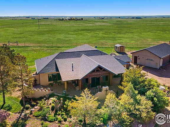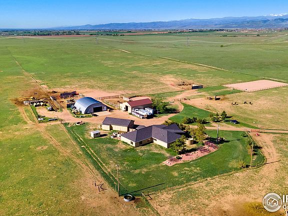 Home on the Range! Find peace, quiet, and mountain views from every room in this comfortable ranch style home resting on 2 seperate abutting 40 acre parcels, with convenient all main level living and recent updates to the kitchen, bathrooms, and laundry room. Thoughtfully designed for easy operation, a horsemans dream. Automatic waterers supply most of the corrals and pastures, which have intelligently placed gate systems for ease of movement through the property. A large outdoor arena and round pen are a perfect combo to keep the horses legged up. The four stall barn boasts individual runs and a tack room with electric, a fridge and sink with hot/cold water, and cabinets to store supplies. The Quonset provides ample space for equipment and hay and feed storage, as well as work space for vehicle repair and maintenance. You'll love watching the sun sink behind Longs Peak and Rocky Mountain National Park into nighttime, making way for some of the best stargazing around! ***Owner Financing may be available, please reach out to Broker for details.***