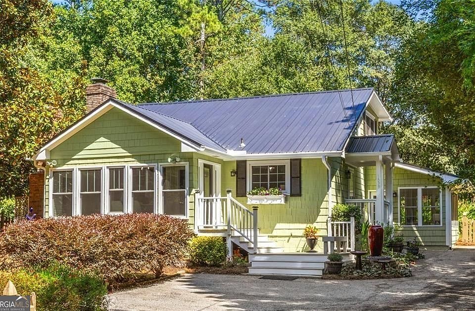 Tucked well back from the street and reached by a private drive, this updated storybook cottage feels worlds away-quiet, green, and magical-yet sits minutes from everything. Original hardwoods, freshly refinished, anchor light-filled rooms including a welcoming family room with beautiful fireplace and electric logs, and a charming dining/breakfast room wrapped in windows (it even features a whimsical low-set "peep" window the former owner added for the family cat or small dog to enjoy a view of the outdoors) and a decorative woodstove. The heart of the home is a granite-topped kitchen with breakfast bar, open to the family room for effortless gathering. Three bedrooms, two updated baths, plus a flexible bonus room (office, gym, or guest) and a sun-splashed attached sunroom. Outside is SPECTACULAR! A fully fenced half-acre with koi pond, screened gazebo, patio, potting shed and a flat lawn that gardeners will adore. An outbuilding offers extra storage as does the side attic storage accessible from the 2nd story, while a partial basement with separate entry adds function. Recent upgrades include a metal roof and new water heater. There is a beautiful walking neighborhood just across the street that leads to Springbrook Park. All in a coveted location near Emory, CHOA, CDC, the VA Center, and just minutes to Decatur Square, Midtown, Buckhead, Brookhaven, and major highways. Tax record size is inaccurate; we have 2020 appraisal confirming size listed.
