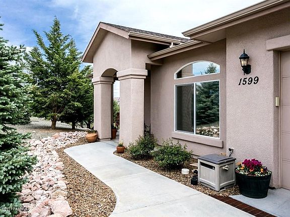 Spacious home with Amazing views. Great room with gas fireplace. Kitchen with granite counters, pantry, separate dining area. Master has a private deck with Granite Dells and Willow Lake views that glow with the sunsets. Large master bath with, double sinks, jetted garden tub and step in shower. All living is on the main level. Lower level has family room, two bedrooms and bath. Lots of storage areas. Seller will paint the little girls pink room if asked with the buyers choice of color. Two cherry trees, plum and peach all bearing fruit in the side yard. Fenced yard for your pets. Private cul-d-sac setting.