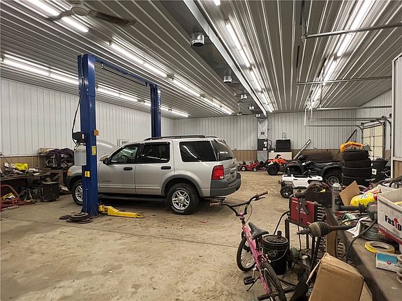 rating and R 22 insulation factor for walls. There are ( 2) Two 8' x 8' insulated garage doors and (1) 8' x 10' insulated garage door. Concrete floor and exterior parking pad, Well and paid public water tap serve garage.9000 # LIFT included in sale and air compressor. Garage has its own 200 amp electric service. Ceiling height is 12 ft in heated area and 14 ft in undeated zone. Seller owns entire driveway (50 ft width); there will be easement on new deed allowing new Lots 1 and 2 egress. Lots 1 and 2 will help to maintain driveway. The 10.6 acres are level with tree lines providing privacy,