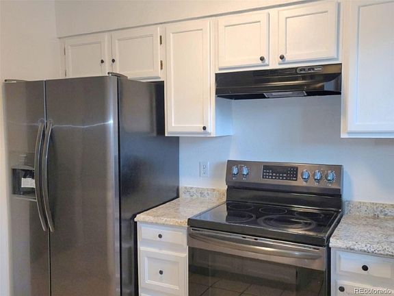 This appealing townhome is located in Aurora's Sunstone Community. As you enter the living room, you will be greeted by a beautiful stone wall with a wood-burning fireplace making the space feel cozy and inviting. The kitchen is open and features a large island with additional cabinets and counter space for food prep and storage, freshly painted cabinets, new countertops and kitchen appliances including the washer and dryer. All of the bedrooms are located on the top floor and have been updated with new carpet and a fresh coat of paint adding to the brightness coupled with the natural light that flows throughout the home. The primary bedroom has a large window welcoming an abundance of light as well as access to the main bathroom. Enjoy some fresh air on your private fenced-in patio which also provides additional storage space. This townhome comes with a reserved parking space and there is plenty of off street parking available for guests.