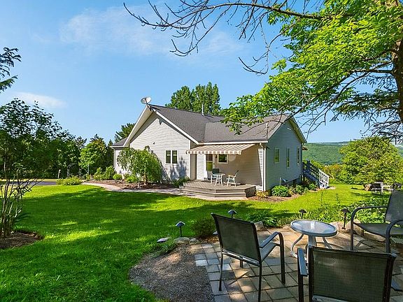 Custom designed and built year-round "vacation feel" home with beautiful views of Otisco Lake and lush hillsides. Private setting nestled between Otisco & Skaneateles Lakes & only 20 minutes from Syracuse. This lovely 3 bedroom home offers one floor living & an open floor plan with hardwoods, gas fireplace & soaring 16 foot ceilings in the Great room, a large cooks kitchen opens up to a dining area & open deck overlooking the lake (one touch operates the automatic awning covering for all kinds of weather). The master suite features a spa like bath & private deck to enjoy your morning coffee! There are two more bedrooms & a hall bath with laundry to complete this floor. The lower level walk out is currently used for storage & semi-finished, but is designed to easily be converted to more living space (home office/ in-law suite). The entire property is host to multiple patios, decks, seating areas, gardens & mature landscaping. This property is in Marcellus schools & in the Town of Spafford, which enables residents public boat launch & water access to Skaneateles Lake. The Otisco Lake conservatory is located approx 1/2 mile away & is a great place to enjoy hiking. A must see.