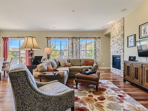 DON'T MISS THIS AMAZING RANCH HOME IN ANTHEM!!!! This part of Anthem is one of the most sought after 55+ communities in the area. This corner lot in Anthem has a super-clean 2 BR ranch. The main floor is replete with high ceilings, wood floors, granite countertops, and tons of light. The family/dining area is spacious and warm, ideal for family intimacy or entertaining. There is a spacious office off the entry, and a trex deck on the back patio. The master suite is large enough for a much bigger home, and the walk-in closet and master bath are beautifully finished. There is a large second bedroom and bath, with main floor laundry off the two car garage. The unfinished basement has high ceilings, egress windows and is plumbed for a bath-this is a blank canvass to enlarge and enrich this great home! The Anthem community boasts one of the most impressive recreation centers in the Denver area, and the miles of trails and parks make this area a joy to live in.