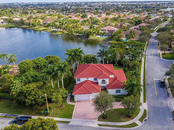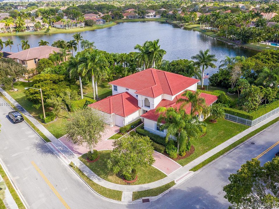 PRICE & PHOTOS IMPROVEMEN. Click on the "VIRTUAL TOUR" link to see more of this Pristine, Luxurious, Stunning, lake front home nestled on an over sized corner lot. This 5 bedrooms, 4 baths 3 car tiled garage shows off its large master bedroom suite with a sitting room, huge bathroom and walk-in closet. The second floor has another master bedroom with private bath and two additional bedrooms with full bathrooms. Accordion shutters are on all windows. The first floor boosts a large private office/5th bedroom option, formal living and dining rooms, eat in kitchen and family room. The living and family rooms lead to the Lanai and extended patio with a beautiful extended view of the lake. Three a/c units, water softener and purifier. Immaculately kept by original owner. Gated community.