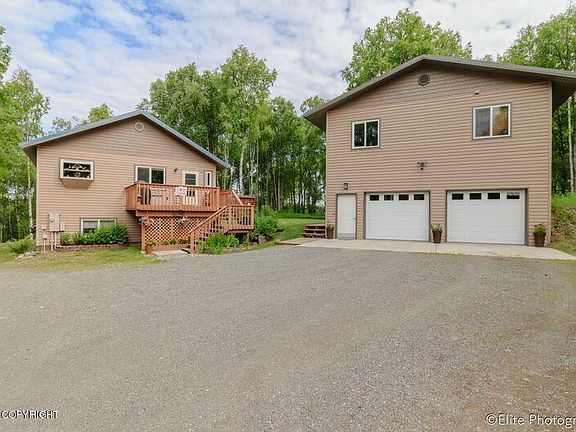 This custom home has lake & mountain views! Also, a detached 2 story 32'x 28', 2 car garage with 1 bd/1 ba apartment! Mother in law quarters? Air B&B? Monthly rental? Additional separate room can be use as office/ storage/ craft room/ or 2nd bedroom. This 3 bedroom, 1.75 bath features updated kitchen with granite counter tops, maple cabinets, stainless appliances, tile & laminate floors. Light and bright interior. All the windows that brings in the light have customs blinds. There is lake access across the street on Lot 3 that is dedicated to lot owners. This float plane lake has a few different names, Little Bill Lake, Montana Lake or Little Montana Lake but the locals call it Montana Lake. Storage shed for garden stuff & conex to store the toys which is hidden under the deck of the upper area of the garage. Extensive decking off the home and garage. Definitely a beautiful place and great location close to the "Y". Moore's Hardware, Cubby's Grocery Store, Sunshine Clinic, DMV, Tesoro and Subway close by with downtown Talkeetna only 13 miles away.