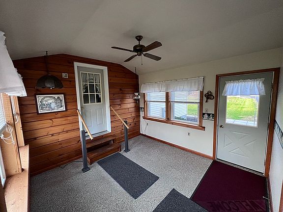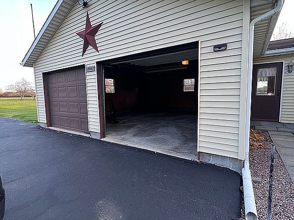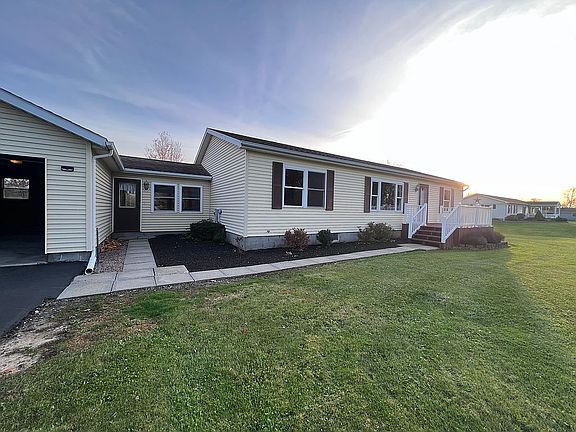 Beautifully located on a quiet road- 3 bedroom, 2 full baths modular home. Home boast a full basement with a 2 stall attached garage and huge breezeway. There was an addition added onto the back of the house, which has vaulted ceilings and a fireplace for those cozy winter mornings. Fresh carpet just installed and a new fresh coat of paint! Huge added bonus is municipal water! The house sits on a double lot (3.44 acres) , with lots of apple trees and wildlife! Call to make your appointment today!!