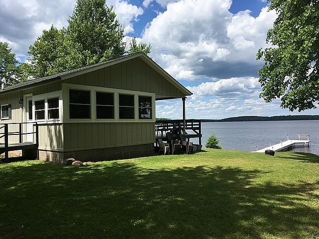 LAKEFRONT HOME --This 864 sqft cabin is merely steps away from the water’s edge with your own private 114 ft of shoreline and boat ramp. Enjoy your morning coffee or evening beverage on your own private dock while taking in the gorgeous views of Nelson Lake. Fully renovated in 2017-18 this year-round cabin was completed with craftmen’s hands --using natural woods and materials in the home to reflect the Northwoods and its unique character. Locally cut and milled wood, along with other furnishings bring in the warmth and spirit of our area. With the focus on efficiency and access, quality appliances, furnishings and features were included to meet the demands of contemporary life while maintaining the style of a Northwoods cabin. The 2018 renovations included new HVAC, electrical, pex plumbing and PVC sewer lines, basswood and pine walls, 3/4-inch hickory flooring, luxury vinyl planking in bathrooms and family room, hickory kitchen cupboards, stainless appliances, fixtures, 3-5" latex foam insulation and additional beaming in crawlspace, windows in family room, steel exterior doors and knotty pine 6-panel interior doors. PROPERTY—This .67 acre lot located on a short dead-end road with year-round cabins allows for the enjoyment of all the natural aspects of a Northern Wisconsin lakefront. With 114 feet of shoreline, a 264 sq foot deck and sandy beach, there are open panoramic lakeviews. While on the dock and in the home one can watch the eagles, loons and other lake wildlife along with beautiful sunrises and sunsets that grace our horizons. With the woods covering a large share of the property, a variety of wildlife abounds. Many recreational activities —swimming, fishing, boating, ATV, snowmobiling, snowshoeing, skiing, and hiking are immediately accessible right out your door. And with your own private boat ramp, it is even easier yet. With Hayward close by, there is access to everything you might need but far enough away to feel secluded. NELSON LAKE--Nelson Lake is a premier fishing lake and most species can be caught directly off the dock; bass, northern, crappie, blue gill, perch and walleye. With 31 miles of shoreline and over 2700 acres, one can kayak, canoe, fish, swim and explore. Our local bait shop not only has great tackle and live bait, but stories and insights into the lake's best fishing holes. Two additional public boat landings are on Nelson Lake within minutes of the home. Various restaurants and watering holes can be accessed by boat on Nelson Lake.
