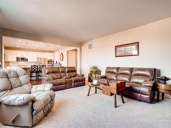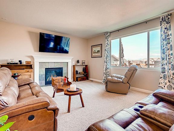 Welcome home! This stunning Steinbeck has it all - 4 bedrooms, 3 bathrooms, upstairs laundry, loft, open floor plan, boasting a sunroom, huge kitchen island with upgraded granite, double ovens, stainless steel appliances, hardwood flooring, 42" upgraded cabinets with crown molding, walk-in pantry, fireplace in family room, 5 piece master bath with upgraded granite, walk-in master closet, a double vanity in secondary upstairs bathroom, an unfinished walk-out basement with 9' ceilings and a large deck off the sunroom. This home backs to the west and provides beautiful mountain views from every room on the backside of the home. The Anthem Highlands neighborhood provides endless fun with a 32,000 square feet community center, two outdoor swimming pools, two water slides, basketball courts, tennis courts, and lots of parks and trails. Anthem Highlands is also home to Thunder Vista P-8 - the newest Adams 12 Five Star School. Anthem also provides easy access to both Denver and Boulder.