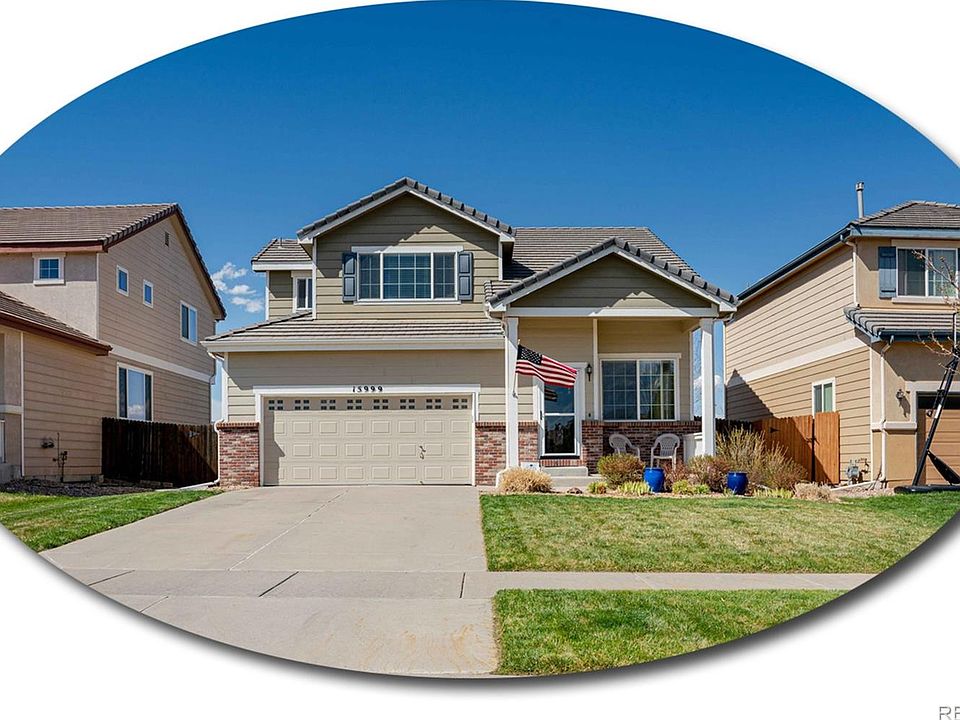 *DON'T MISS THE 3D TOUR* Fantastic, move-in ready two-story with picturesque mountain views in the New Horizon community of Parker! The accommodating floorplan is flooded with natural light and offers modern finishes, a soaring vaulted ceiling upon entry, and an open concept kitchen and family room, ideal for entertaining. The spacious kitchen presents plentiful cabinets, a large pantry, and a sunny casual dining space with direct access to deck; the perfect place to take-in beautiful Colorado sunsets. The adjoining family room features a cozy gas fireplace and functional built-ins. Upstairs, the spacious master suite encompasses a walk-in closet and a tastefully updated four-piece bath. Two additional bedrooms share use of the full hall bathroom. The laundry is also conveniently located on the upper level. Future expansion opportunity can be found in the unfinished walkout basement. Rest easy with new A/C and water heater. The backyard boasts a second-story deck with incredible mountain views and a sizable paver patio that can be accessed from the walk-out basement. This superb home is ideally located across from the neighborhood park, close to downtown Parker, and is situated in between I-25 and Parker Road for a quick commute anywhere!