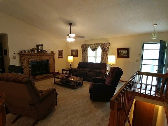 Lovely highway frontage home is nestled in mature trees and has a small chainlinked area in back. The charming covered front porch is perfect for a porch swing or glider to enjoy the south view. 2 BR and 2 BA up along with vaulted ceilings and an open floor plan, eat in bar and dining room for over 1300 sq. ft plus a partially finished basement give plenty of options for a growing family. An enclosed sunporch off the dining room is great for morning coffee through all seasons. 2 car garage up and a one car basement garage gives you plenty of room for storage. New 4 ton Lenox Heat/AC system added in 2018. This is a great package for only $129,900.