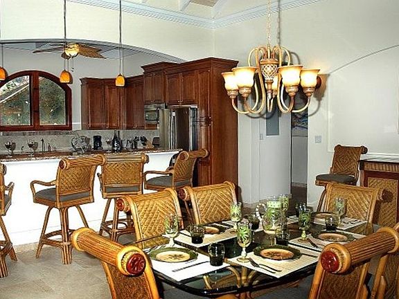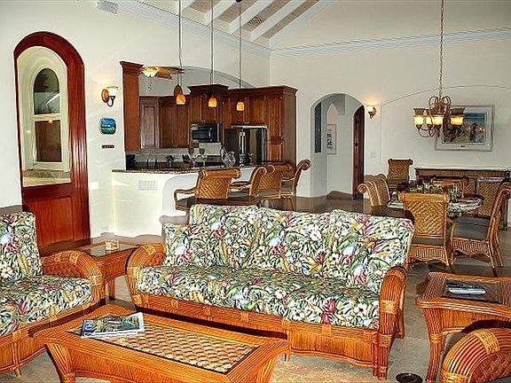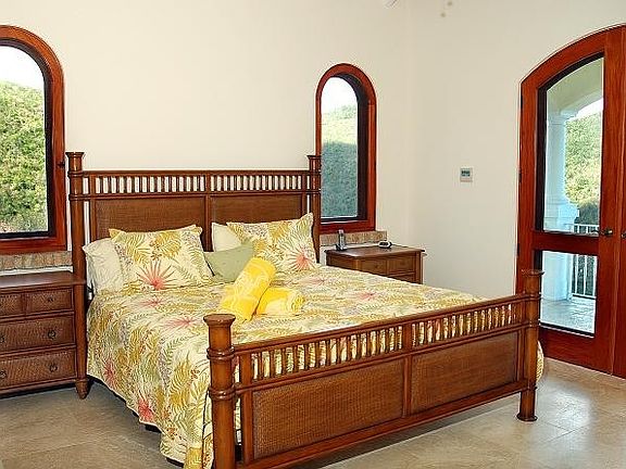 PROMISES KEPT is an exceptionally private & luxurious turn-key villa in upscale Point Rendezvous. One of the best custom built & architectually designed layouts, enhanced by a smart tri-level floor plan that provides interior access to all 4 king bedroom suites, each with its' own balcony, plus media room & office. The elegant infinity edge pool is superbly located to flow seamlessly with the main level of the villa. Soaring catheral ceilings, arched 9 ft. Mahogany French doors & windows w/paned hurricane glass, central A/C and travertine flooring throughout, a huge chef's kitchen with SS appliances, granite countertops & breakfast bar. Generous covered verandas to enjoy the easterly breezes & expansive panoramic views of Fish Bay & beyond. Gated entry, automatic 50KW generator, professionally landscaped, immpectably maintained. All confirmed rentals must be honored. Visit our website: www.cruzbayrealty.com