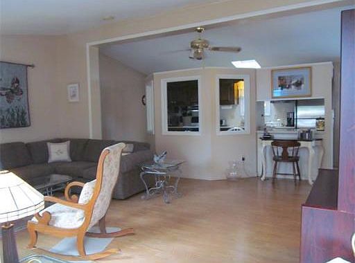 Lovely Double Wide "Regency" Model ~ eat in kitchen open to huge cathedral great room and dining room with sliders to private rear deck ~ bright and cheery rooms offer lots of natural light ~ skylights in kitchen and bathrooms ~ great wooded setting ~ utility mudroom has washer, dryer, furnace and hot water tank and leads to side door entry to large fenced in yard area ~ pergo flooring throughout ~ newer roof, replacement windows, central AC unit newer, and newer hot water tank Regency Model, 1985 Virginia Homes Mobile Home 28x56 Serial No VA-328D-CK-56-R-10492