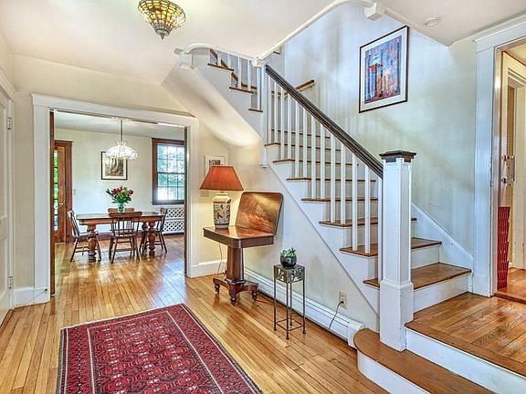 Rare and sought after single-family in ideal East Arlington location! Steps to the Capitol Theater, restaurants, shops and transportation. Picture perfect, sunny and full of charming period details. Enter to a grand foyer and gracious central staircase. Front-to-back LR w/gas FP and balcony overlooking the large private yard and gardens. The DR is open to the kitchen and leads to a delightful covered side porch veiled in lush greenery. The sunny kitchen has a modern layout with lots of cabinets and counter space and looks out over a large deck for summer cookouts. A staircase leads to a half bath and back to the entry. Ascending the stairs brings you to an elegant front facing foyer, 3 generous BRs, an office, and a large full tiled bath. The walk-up 3rd floor features another BR and attic space ready for expansion. In the basement are updated heating, hot water, and elec. systems as well as lots of storage or play space. Completing the home is a garage parking space plus 1 off-street.