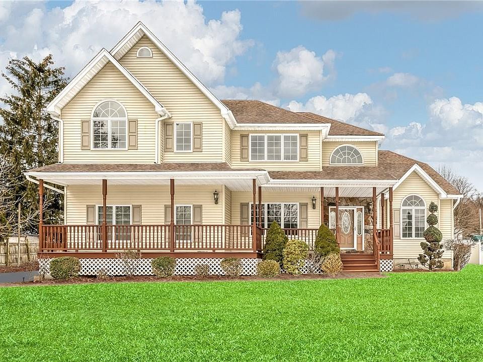 Move right in! Colonial with rocking chair front porch. This 5 bed, 3 bath home features a 2 story entrance, high ceilings, hardwood floors and recessed lighting throughout, and ample windows for natural lighting. Eat- in kitchen, Granite countertops. Guest suite and full bath on the first floor. Upstairs, check out the luxurious primary suite with double doors, his and hers walk in closets, and ensuite bath with his and hers sinks. Remaining 3 bedrooms are roomy with good closet space. Enjoy winter family time in front of the fireplace, or your summer days in the gorgeous inground pool. Backyard is large and flat, as well as fully fenced. Basement is unfinished but very spacious, with lots of potential. Additional Information: ParkingFeatures:2 Car Attached,