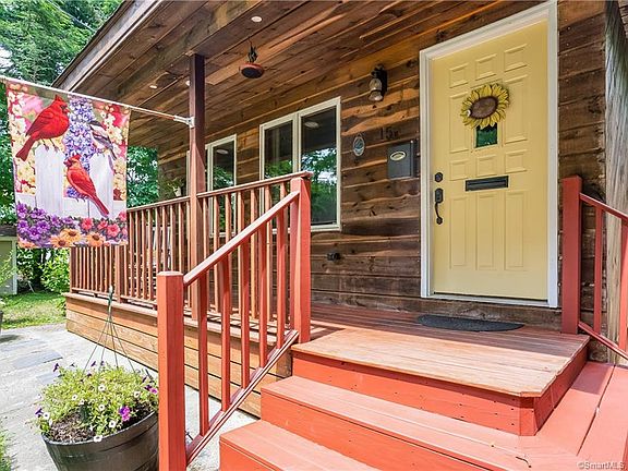 CHARMING chalet style home close to Lake Pocotopaug! This 2 bedroom, 1 1/2 bath home has a unique open floor plan and many special features. First floor has large living room, open dining area, kitchen with granite counter tops, stainless appliances, and plenty of storage. Half bath and laundry also on main level. Upstairs both bedrooms have soaring cathedral ceilings. Full bath and storage also on 2nd floor. Outside is just as cute as the inside - private level lot with covered front porch, first story covered deck off the dining room, and a second story open deck off the back bedroom. Garden shed with raised bed veggie garden, and established perennials throughout. Fully fenced back yard. This is a special place! Fully rebuilt in 2006, this home sits on it's original 1920's foundation. New septic 2012.