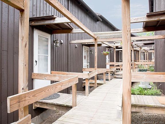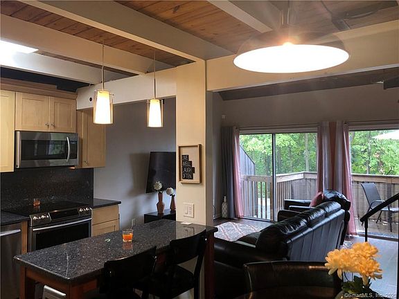 Country charm, woodsy feel, lots of lovely outdoor space. Remodeled loft style condo. Plenty of character & charm. Double sliders leads to expansive deck. Cathedral wood ceilings, open floor plan. Spiral stair case to loft bedroom w/ large closet & master bath, Central air. Club house, in ground pool, carport, storage area, picnic area w grill. These condos are atop a hill with winter views of the the surrounding area. This tree lined property will make you feel like you have gotten away from it all. But don't be fooled easy access to near by shoping and highways. Very convenient location. Unit feels much larger than it is with the cathedral ceilings and open loft.