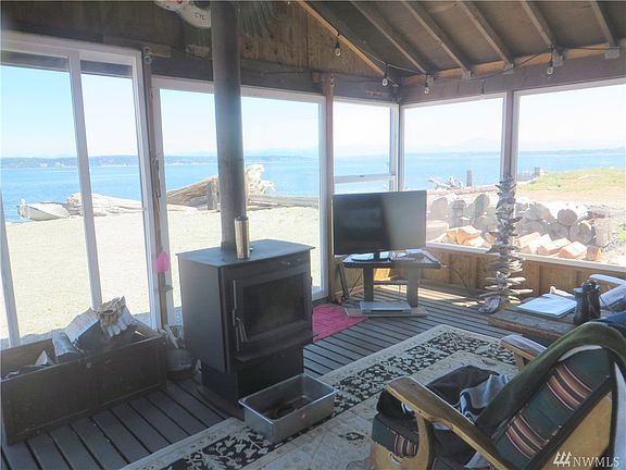 Panoramic View Cabin w/out buildings right on beach. Shop. Large Covered Gazebo, extra storage building. View from 90% of cabin. Main cabin is warm & cozy w. family room w/ free standing stove, Kitchen w/ 3/4 bath. upper level w/ bed & 1/2 bath. Large Shop includes tools , backhoe, & much more. Extra storage for all beach tools and toys. Private Island. this community beach area is a warm and friendly community. Main Island has golf course, tennis court, yacht club. Seller can carry contract