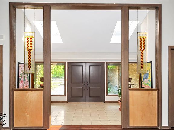 Nestled on a gated 1.78-acre lot, this architect-designed ranch offers a unique opportunity to create something truly special. Perfectly livable as it is, this home is ready for your loving touch to bring out its full potential. With over 7,000 square feet of living space, it combines timeless design with the opportunity to shape a space that's entirely your own. The tranquil setting is one of its standout features-lush landscaping, a peaceful pond, and an expansive sense of privacy make it a retreat from the everyday. Yet, it is conveniently located just minutes from Burr Ridge Village Center, shopping, dining, and major routes like I-55 and I-294. Inside, thoughtful design greets you at every turn. The foyer, with vaulted ceilings and skylights, leads to a dining room accented by exposed brick columns. Expansive windows in the living and family rooms invite natural light and provide serene views of the greenery outside. Soaring ceilings, exposed beams, and warm wood tones add character throughout. The kitchen is a bright and functional space with cathedral ceilings, skylights, rich cabinetry, stainless steel appliances, and access to the patio and garden. The main level includes three bedrooms, including a spacious master suite. Two additional bedrooms share a Jack & Jill bath, while two powder rooms offer added convenience. Upstairs, a loft with its own private bath provides flexibility for a studio, home office, or guest space. The lower level extends the home's possibilities, with a large recreation area, space for up to three additional bedrooms, a full bathroom, and abundant storage. Recent updates (2022-2023) include new hardwood floors, refreshed bathrooms, a new roof, four furnaces, and a hot water heater. The property also features an attached three-car garage and a detached garage with a workshop and extra parking, perfect for hobbyists or collectors. For those seeking a one-of-a-kind property with architectural character, serene surroundings, and the opportunity to add their personal touch, this home is a must-see. Schedule your private tour today and envision the possibilities.