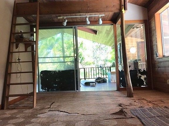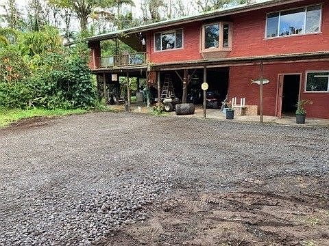 Handyman's Special: TLC and elbow grease will uncover the former glory of this property's potential. This is a great value for a well-established home with 2 stories and multiple rooms. The natural ohia poles add a special elegance to the structure and blend in well with the Hawaiian rainforest of Puna, which embraces this comfortable tropics home. The interior of the home has an extensive amount of redwood T&G, on the walls as well as the ceiling, yielding a natural ambiance to this country home. The expansive lanai has 736 sq.ft. of area for comfortable island living and entertaining. The stately driveway leading to the home is lined with towering palms, many over 40 years old, of various varieties from all over the world, including: Royal Palm, Wax Palm, Raphis Palm, Date Palm, Betel Nut Palm, Alexander Palm, among many others. Numerous plantings of fruit trees, including avocado and citrus, ornamentals and flowers add to the beauty of this special property in the rainforest of Puna. Although parts of the home are unpermitted with deferred maintenance, some TLC will uncover the former glory of this botanical garden estate!