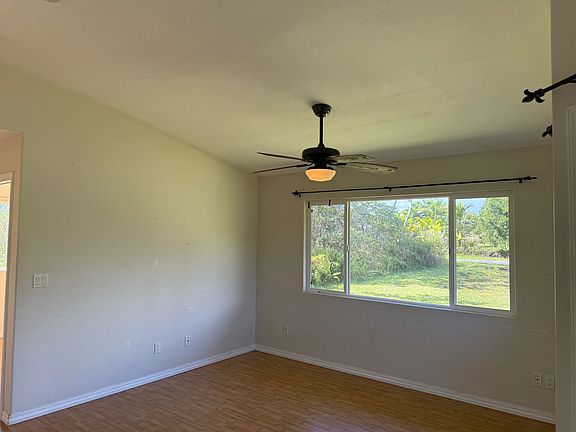 Charming 2BR/1BA home located in the Puna District. Kitchen is complete with granite countertops and stainless steel appliances. Ceiling fans throughout the house and a covered lanai. The property is on water catchment system and electricity is included in the rent. Conveniently located near Orchidland Minit-Stop and True Value Hardware. Directions: From Highway 130, head towards Pahoa, Right onto Orchidland Drive, Right onto 36th Ave. Eleven poles in on the right side. Drive by only. Do not access property without being accompanied by the Property Manager. Do not drive down the driveway. The drive-by is intended to help the applicant determine the property is situated in the desired location with acceptable surroundings/neighborhood.