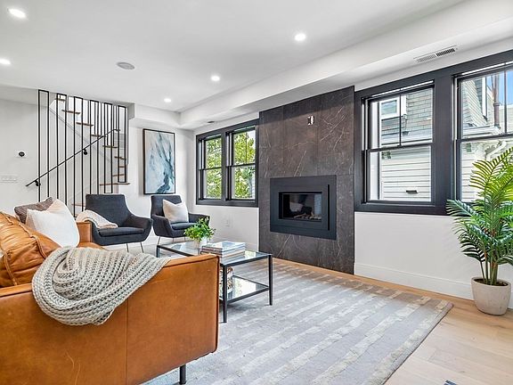 Welcome to 16B Evergreen Ave, located in the heart of Winter Hill. The effortless blend of modernity & sophistication is unmatched. This Philadelphia-style top-floor condo offers 3 beds, 3 baths with an expansive floor plan for comfortable living, and 2 en-suites. The living area boasts a floor-to-ceiling gas fireplace and is sun-drenched with windows that bleed into a sleek kitchen with quartz counters, stainless steel appliances, and 2-toned custom cabinetry. Living space is extended into the lower level. Ascending upwards, is the primary suite with dual closets, a large private roof deck, and beverage cooler. This Somerville beauty delivers smart features including NEST thermostats, a video doorbell, wired for CAT6, and ceiling speakers throughout the main level. 16B Evergreen Avenue offers 2 parking spots, a fenced-in yard, and patio. Nestled in a quiet neighborhood, steps to the new Gilman stop, Winter Hill Brewery, and the renowned Sarma Restaurant.
