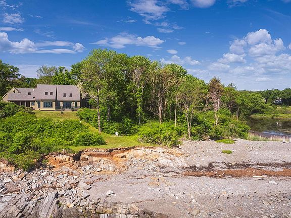 Nestled in Godfrey Cove, this estate-like property boasts nearly 1,000 feet of Godfrey Pond water frontage. Perched high above the crashing surf, the home overlooks the expansive Atlantic encompassing over 12 acres offering development potential with the 3 acre building lot with a proposed 5 bed septic design. This desirable location is only minutes away from York Harbor, Kittery and Downtown Portsmouth. Constructed by Maine Post and Beam, the 3 bedroom home has an open-concept design, highlighted by solid wood beams and a versatile floor plan. The first floor hosts a spacious living area featuring a fireplace, gleaming wood floors and doors opening onto seaside decks. The open kitchen, complete with stainless steel appliances and granite countertops, seamlessly flows into the adjacent dining space. Wake up to the melody of crashing waves and the invigorating scent of the sea from the first floor primary suite, complete with a walk-in closet, spacious bath with a sauna, and a private ocean view deck perfect for savoring morning coffee or a glass of wine. Additional 1st level features include a spacious office, a mudroom, a pantry, a half bath, and a laundry room. The 2nd floor offers two guest rooms, one en-suite, a separate full bath, a spacious family room, and ample storage. The property also includes a 2-car garage, generator, and well landscaped grounds with vibrant blooms throughout the seasons. A true nature lover's seaside retreat.
