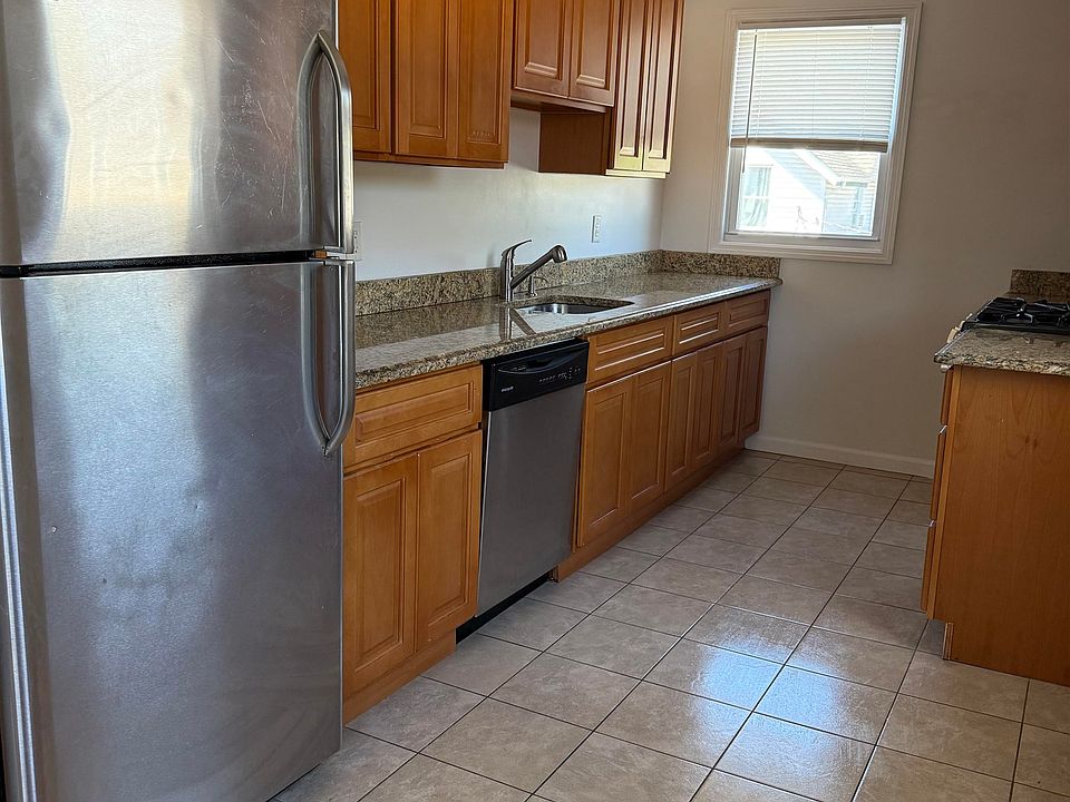 Freshly painted and updated 2 bedroom apartment - newer kitchen with all stainless steel appliances including dishwasher, granite countertops with tiled floors. Newer upgraded bathroom. Central A/C. Open layout with hardwood floors. Great closet space and large deck to enjoy. Two assigned parking spaces. Laundry onsite. Great location 1 block from NYC transportation and near shopping and restaurants. READY FOR MOVE IN, 1 NO PETS, owner has RE licenses.